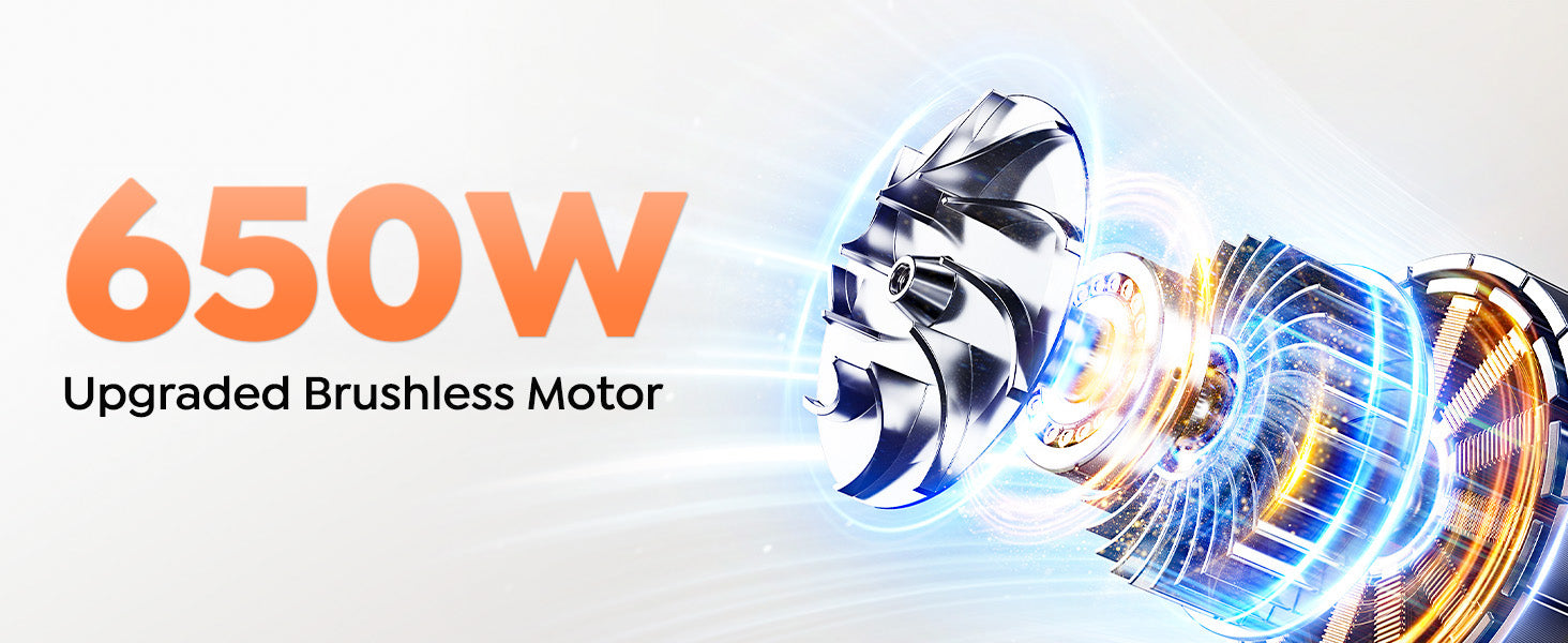 - Ultra-powerful 650W Brushless Motor & 55KPA Suction